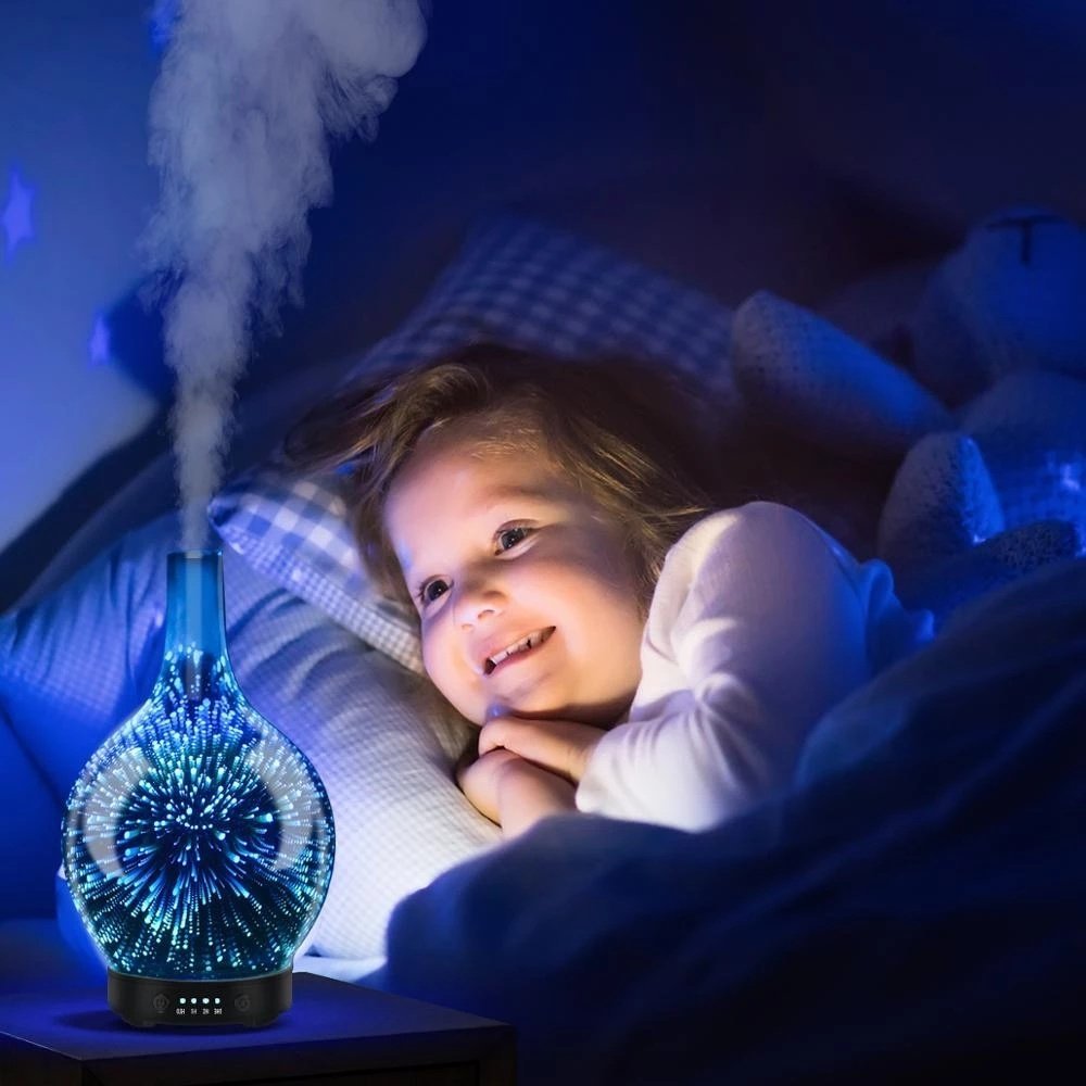 3D Fireworks Glass Vase Humidifier With 7 Color Led Night