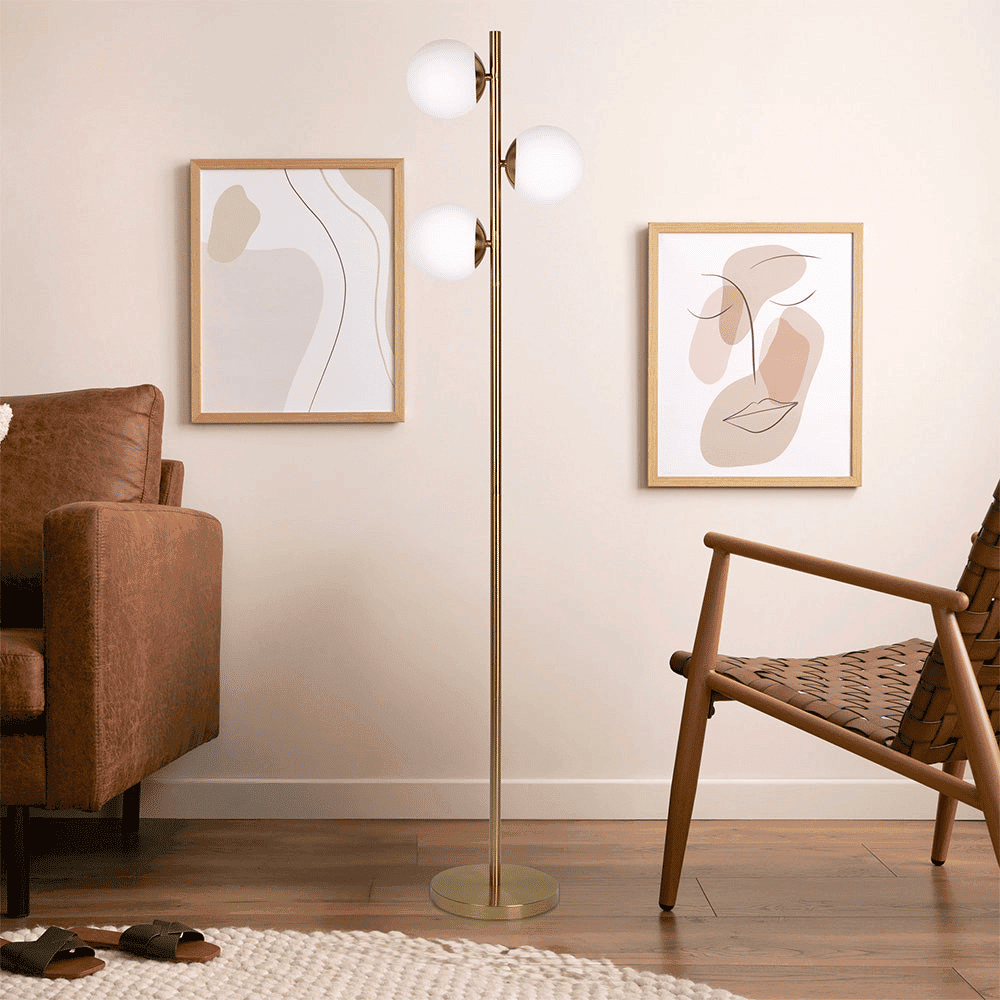 Brilliance Modern Gold Brush Floor Lamp Opal Glass Shades brings practical style and everyday function to your home. Review the product details and dimensions to confirm the best fit for your space.