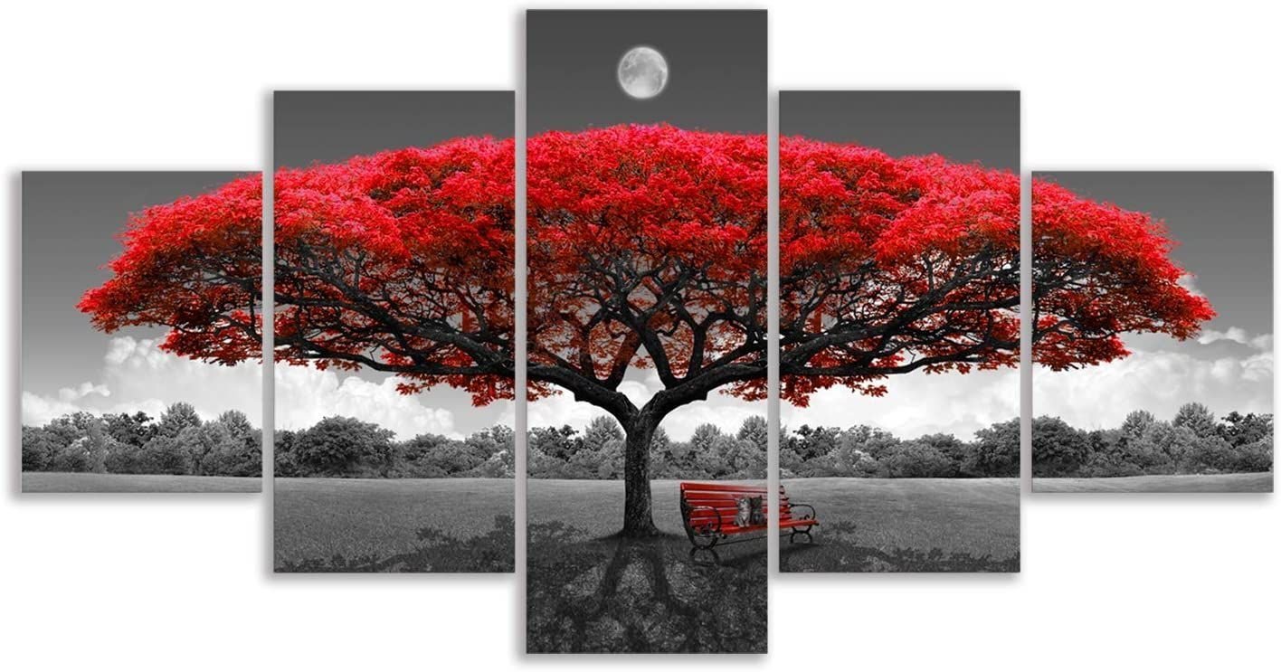 Home > Canvas Wall Art Red Tree Wall Art With Moon Black And White 2919