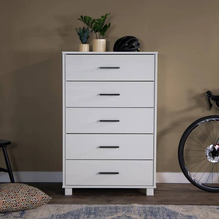 Modern Farmhouse Solid Wood 5 Drawer Bedroom Chest In White